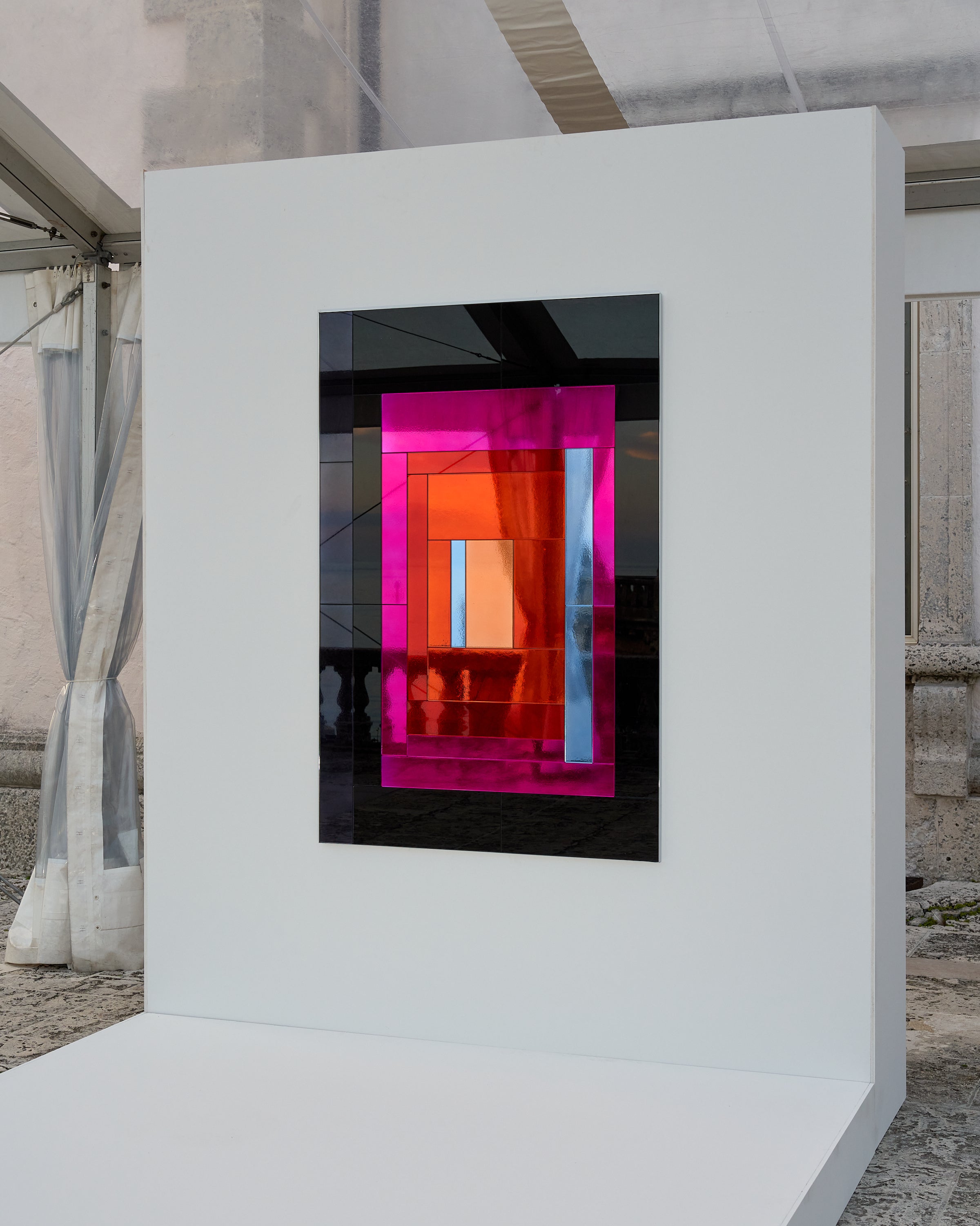 Martin Grasser's journey in the world of fine art is driven by his deep connection with typography. His passion for type stems from his lifelong fascination with viewing letterforms, words, sentences, and paragraphs as art itself. Grasser's diverse background includes designing the Twitter logo, visual storytelling for Nike, and creating the Color Dot Font. Since 2022, Grasser has taken his practice onto the blockchain with three notable generative series: Squares, LOVE and Themes and Variations where he worked in collaboration with Vera Molnár a pioneer of computer art. In his latest work "Portraits," Grasser uses generative algorithms to decouple letterforms from their prescribed shapes and instead assign colors to each letter in the alphabet. The result is a beautiful visual language, where words and phrases become new abstract forms. Collaborating with TRAME, Grasser incorporates Venetian glass into his art, to create mirrors that interact with the viewer, inviting them to shape the narrative of the artwork.
